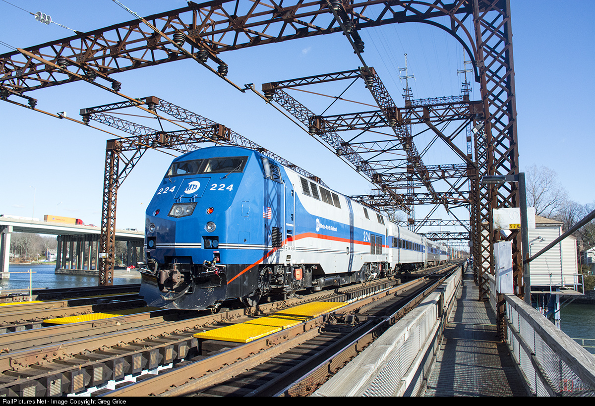"Holiday Train on Saga Bridge" Metro North's annual Holiday Train heads east up the New Haven Line passing over the Saugatuck River Railroad Bridge with P32 215 on the head end and P32 224 on the rear. The locomotives sandwich Metro North's "business" cars.