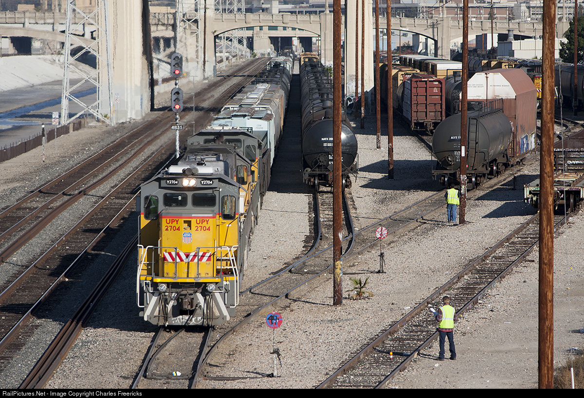 | The El Segundo Local builds its train in 4th Street yard. Power is a pair of two Gensets bookending a GP38-2. While it sounded like all three were working the GEEP sure was making a lot more noise than the other two. |