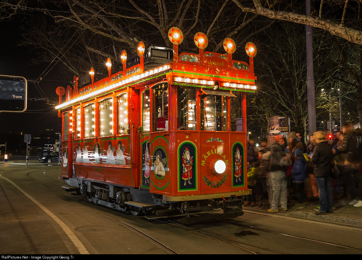Street car Be 2/2 # 1208, built as Ce 2/2 # 208 in 1913, is the oldest operational vehicle of the Verkehrsbetriebe Zürich (VBZ). Since 1958 the vehicle is the "Märlitram" (myth streetcar), running in pre christmas times on a 20 minutes round trip through Zürich, exclusively for children. The driver is the Santaclaus, and several angels are on board telling fables.