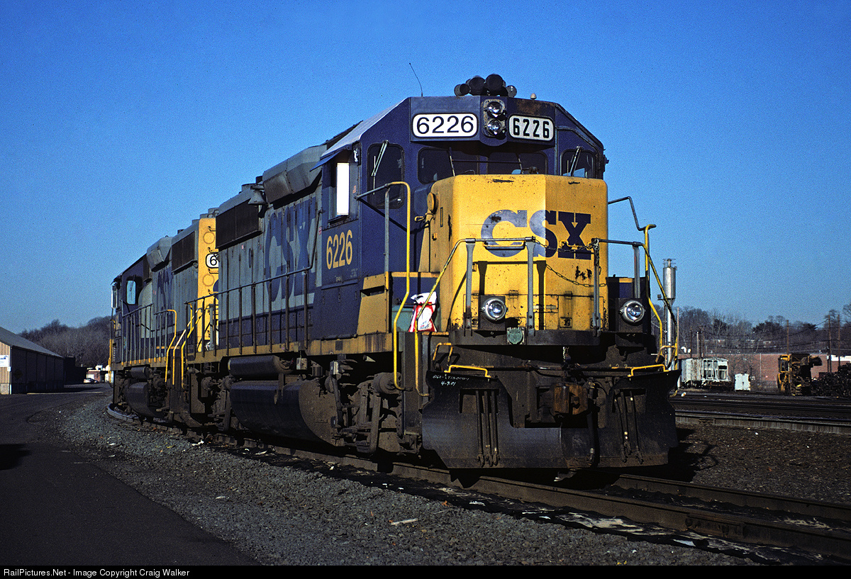 CSX owns a lot of GP40-2s - at least 385 units, from a variety of predecessor railroads: A&WP, B&O, C&O, CR, GA, L&N, RF&P, SBD, SCL, WA and WM. CSXT GP40-2 6226, sitting in West Springfield, Massachusetts, on February 1st, 2003, was originally Baltimore & Ohio 4327, built in February 1979 (which means as a B&O unit, it wore Chessie System colors).