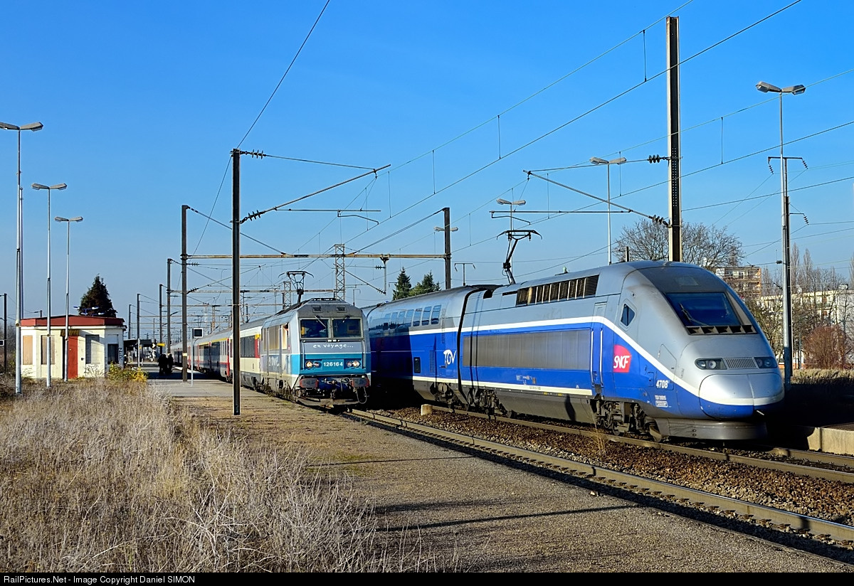 | EC 91 is crossing with a TGV high speed train set in the Saint-Louis station. The TGV is running between Zurich and Paris, the EC 91 between Brussels and Basel SBB. |