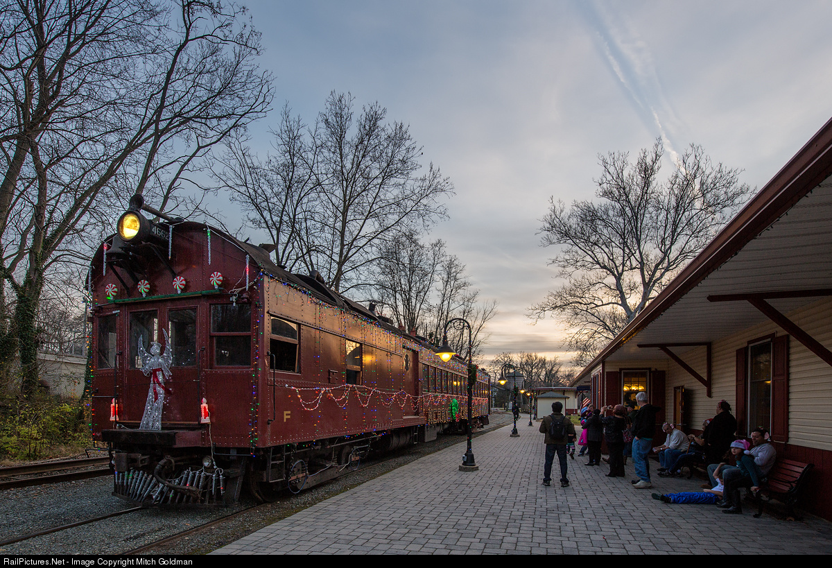 Wilmington & Western former PRR Doodlebug adorned in Christmas lights as it prepares for a dusk departure from Greenbank Station. These "Holiday Light Express" trains run on select dates, typically at 5, 6, 7, 8 and 9 PM through to December 30th. For more information, visit the railroad's website here.