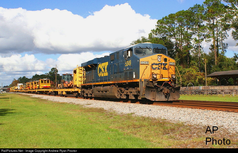 | Here we see a South Bound CSX W030 MOW Maintence of Way through Folkston, GA which sees anywhere between 50-70 trains daily. Folkston, Ga has two subs in one, The Nahunta Sub and the Jesup sub which starts and ends there. This Sb M0W train is led by CSXT 5349 A ES40DC.