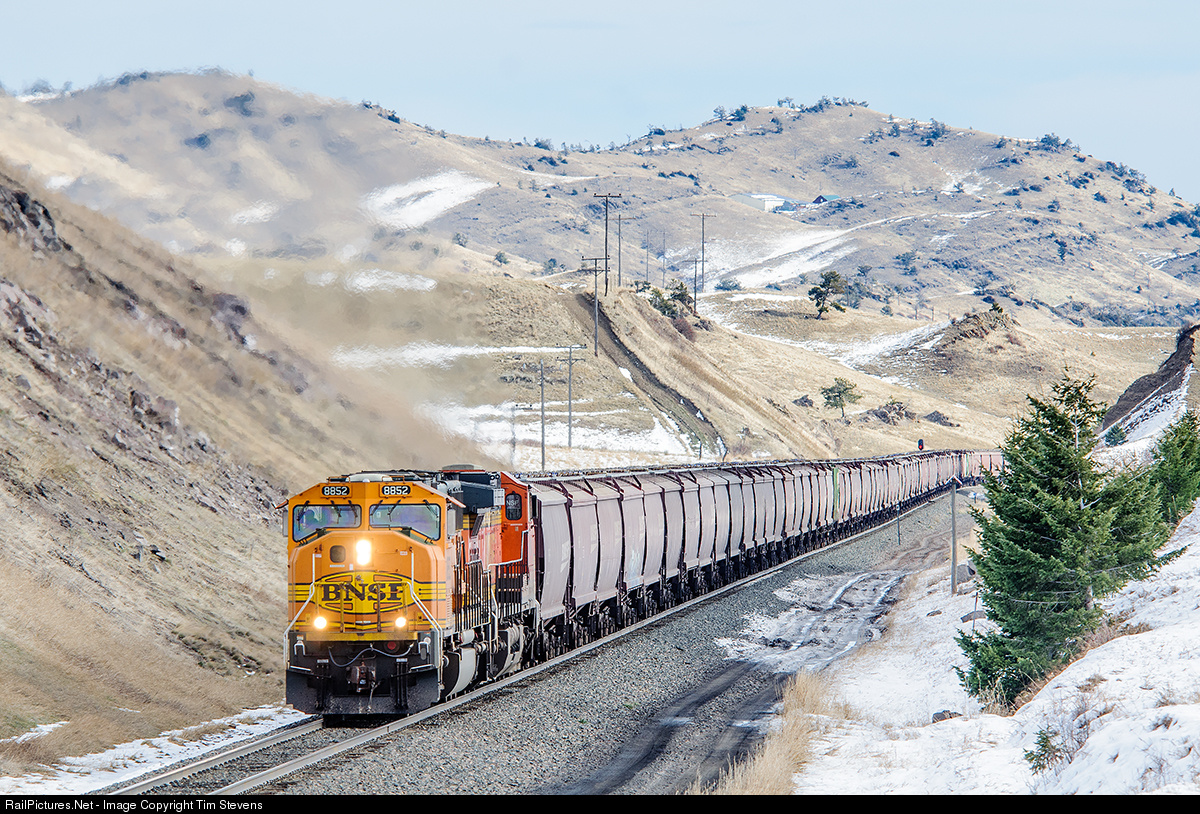 | Eldridge, ND - Kalama, WA grain loads grind up Bozeman Pass on MRL's 2nd Sub at a crawl... probably less than 10mph! |