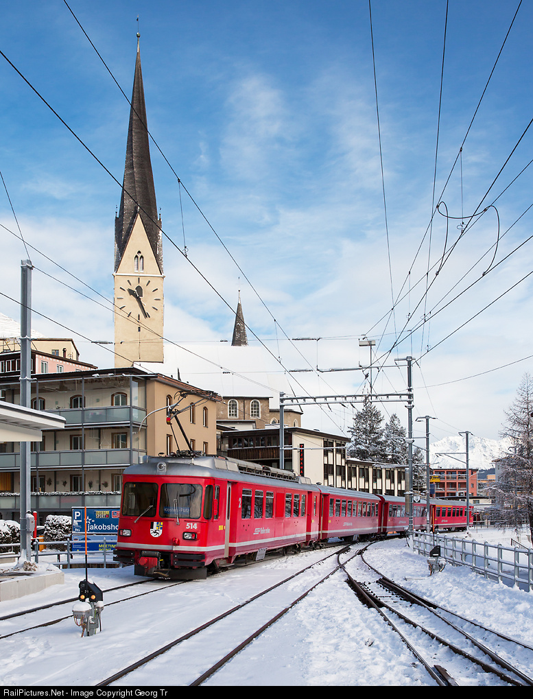 | Finally, Grisons got a few inches of snow! Railcar Be 4/4 # 514 with push pull train is leaving Davos Platz as Regio Express 1030 bound for Klosters Platz. |