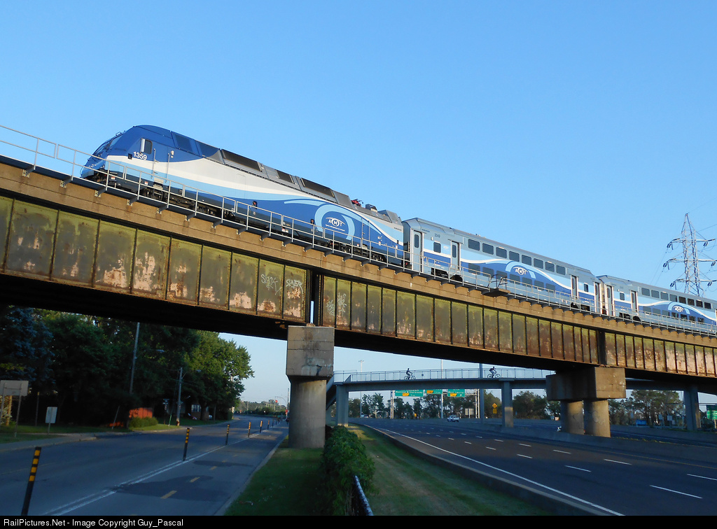 | AMT 1359 hauling train east at St-Lambert,seem's everybody take the train,by seeing this empty highway under the bridge |