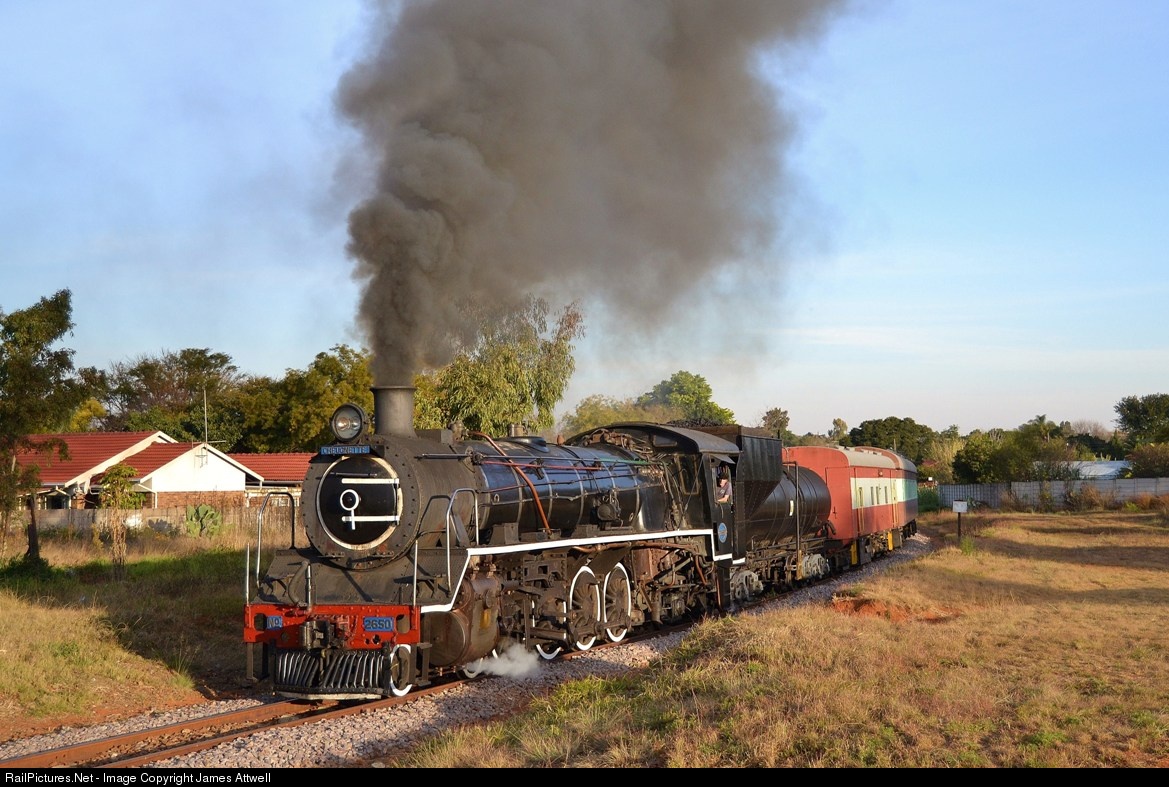 | Friends of the Rail's class 19D No.2650 performs a runpast in the setting sun, along the Rayton to Cullinan branchline. |