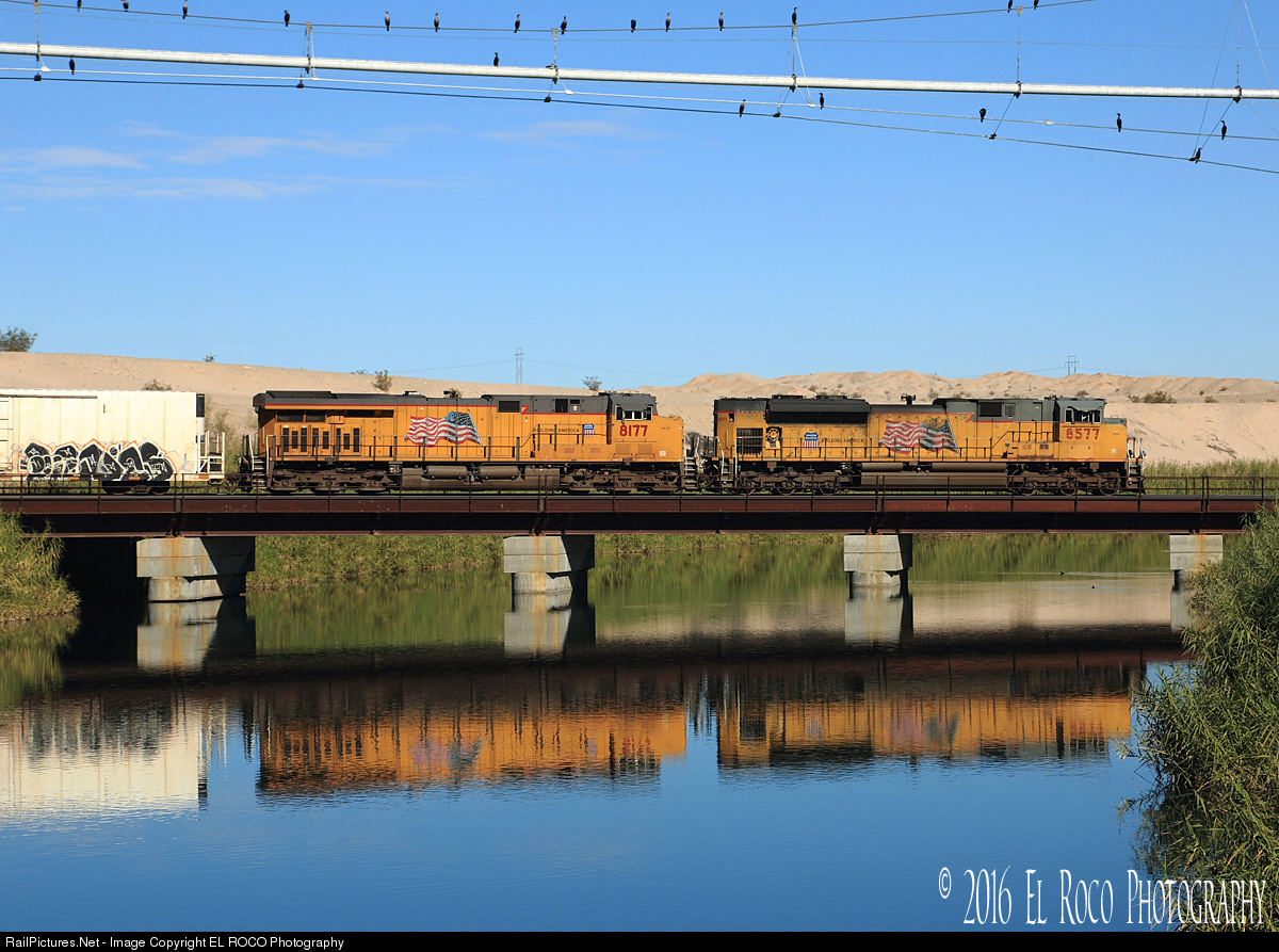 - Under a blue Sonoran sky, an eastbound stack train crosses the unlined channel of the All American Canal in Winterhaven California.