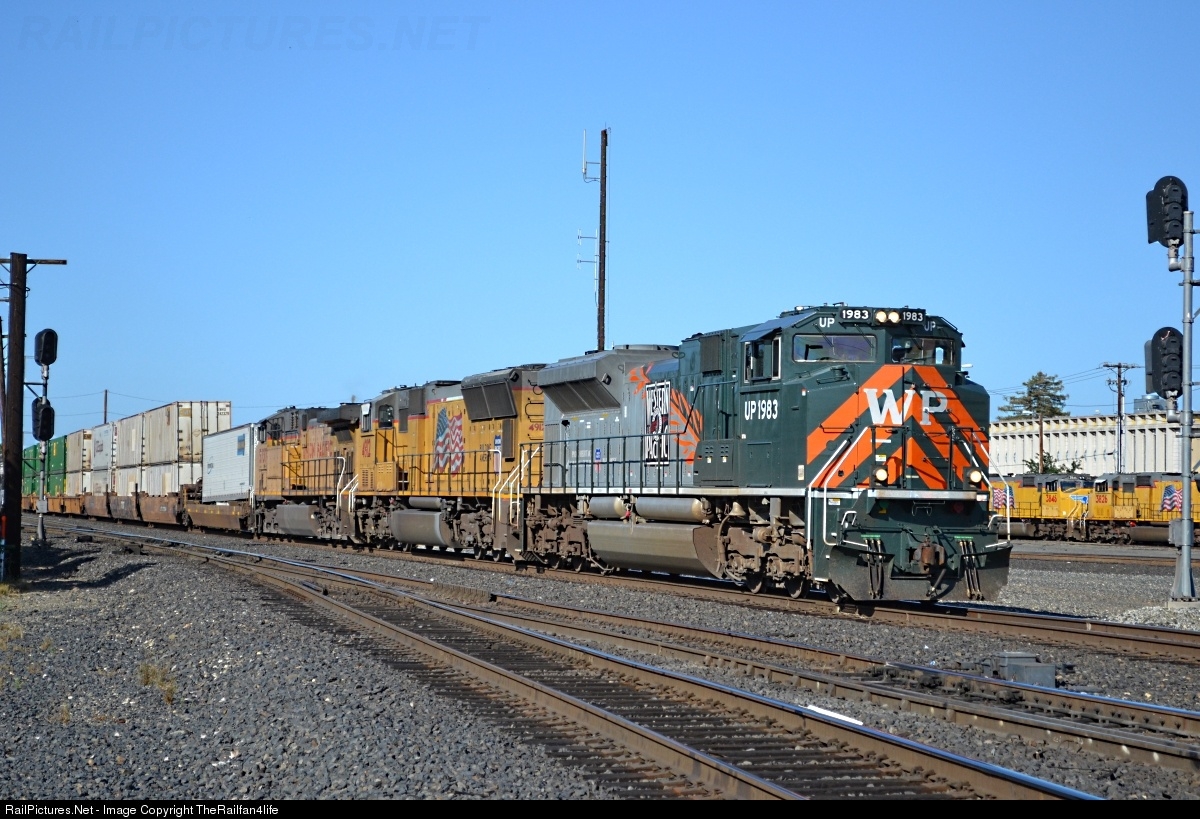 UP 1983 leading a westbound intermodal train through UP's Yard in Roseville on a sunny California day!