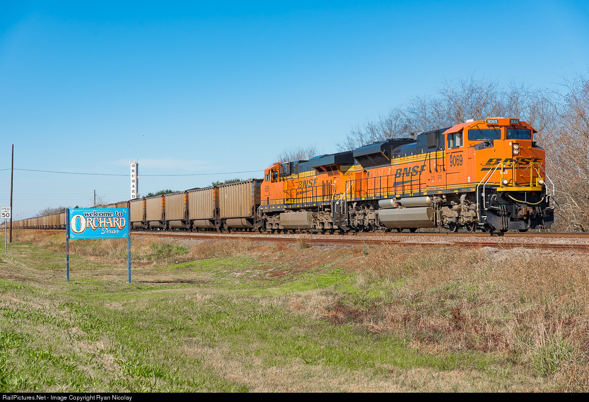 RailPictures.Net Photo: BNSF 9069 Burlington Northern Santa Fe EMD SD70ACe at Orchard, Texas by Ryan Nicolay