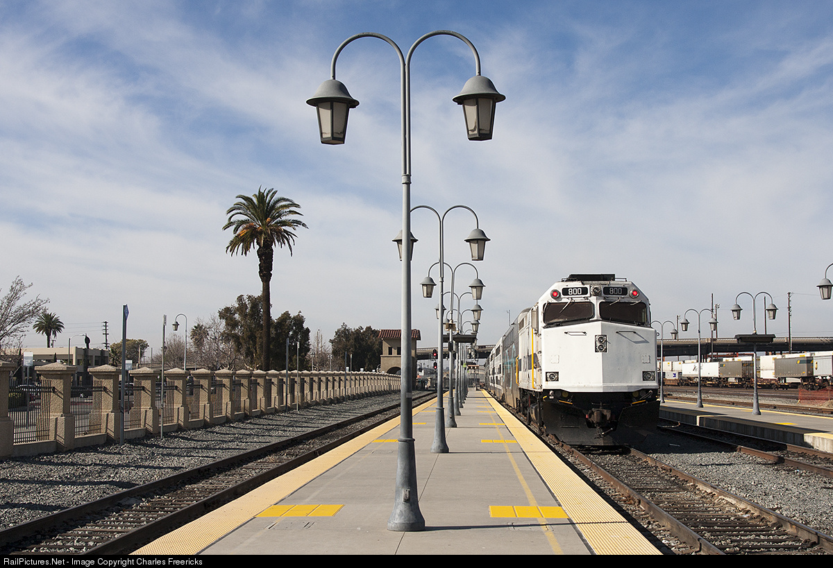 | Metrolink's lone F40PH (one of four bought from Amtrak, but the only one to ever enter service) waits with a train it will push to Los Angeles. |