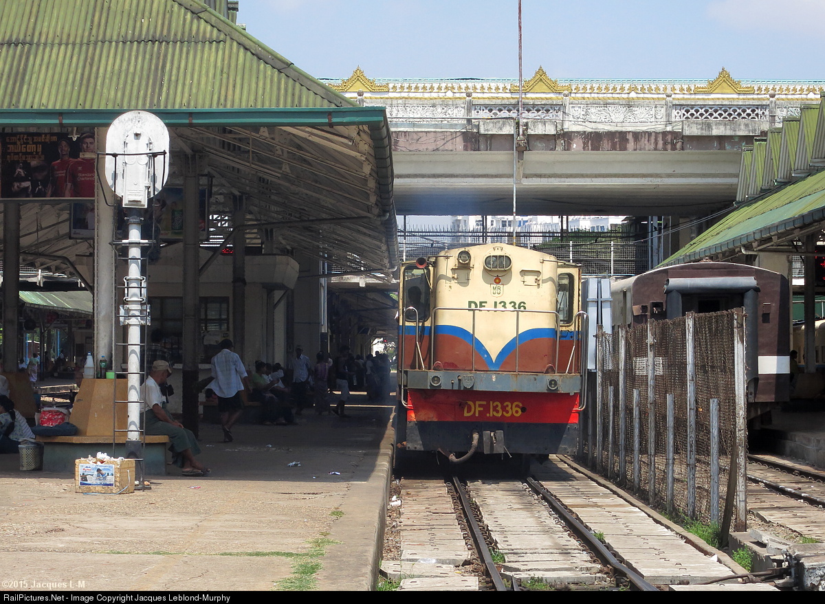 | On a sunny and swelteringly hot day at Yangon's central station, a mixed train prepares to depart for an unknown destination. DF-class 1336 is one of many former Indian YDM-4s that were sold to Myanmar as India's metre-gauge networks were downsized. |