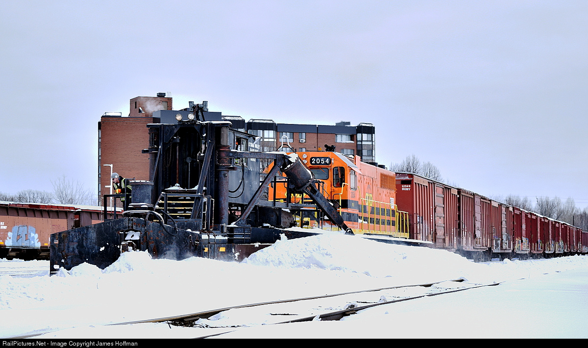 The Ottawa Valley Railway was busy in the North Bay yard spreading the snow and clearing the tracks. They are seen here spreading the last few tracks while pulling a cut of cars out of the way