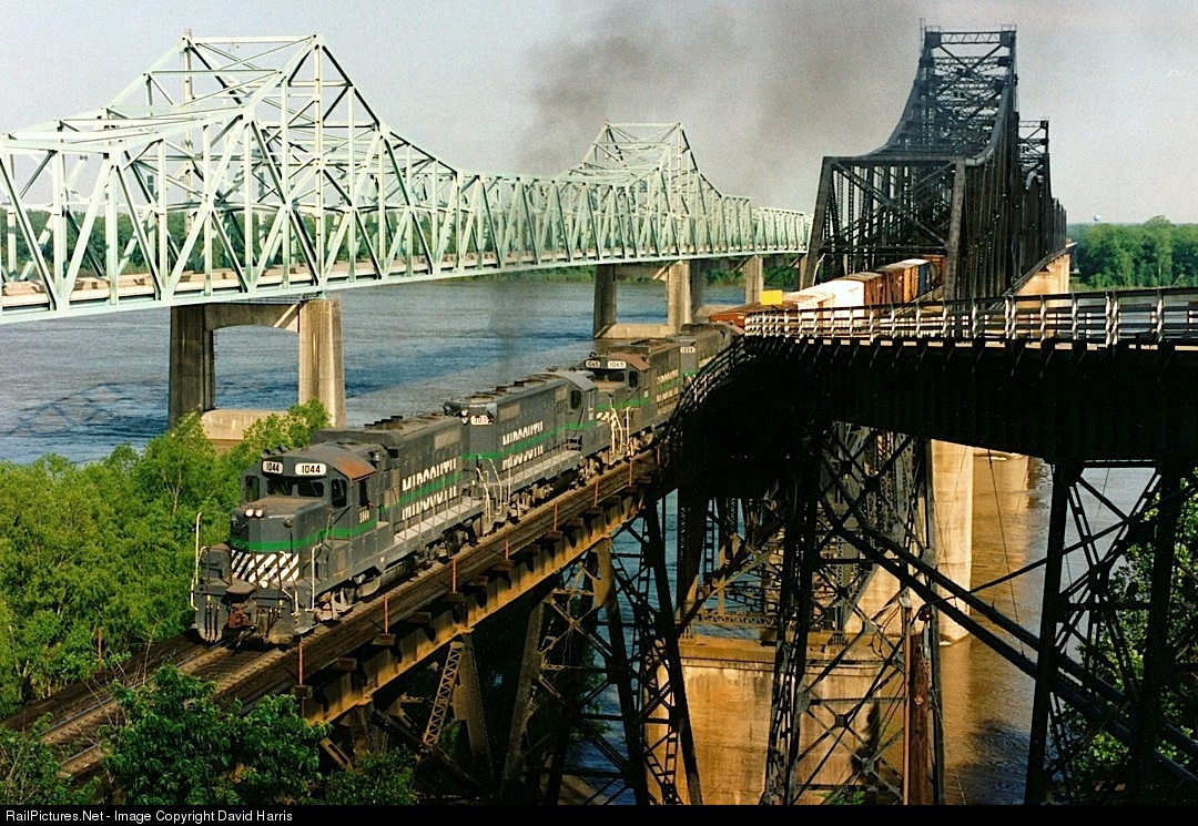 In May 1993, KCS had taken over, but there were still lots of MidSouth units around, with solid sets still fairly common. It appeared that perhaps there was some effort - at least in the early days after the takeover - to avoid mixing dissimilar types, so Meridian-Shreveport trains in pre-Raceway days often had all MidSouth Paducahs, or all GP40s. The intermodal flood had not begun, and C-C power had not yet taken over.
