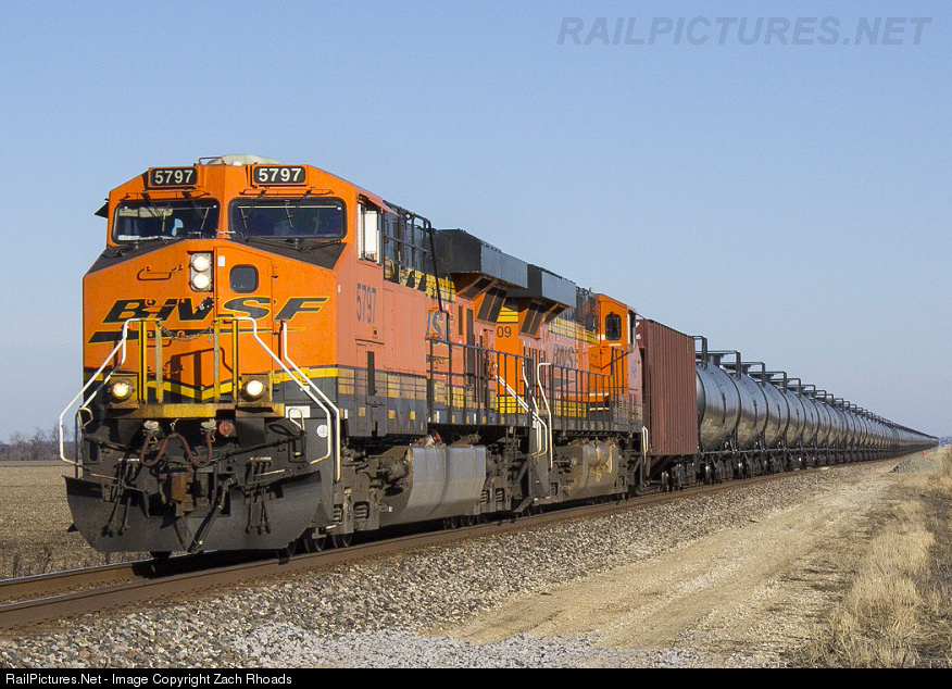 BNSF 5797 leads it's tanker train west on the BNSF Marceline Sub.