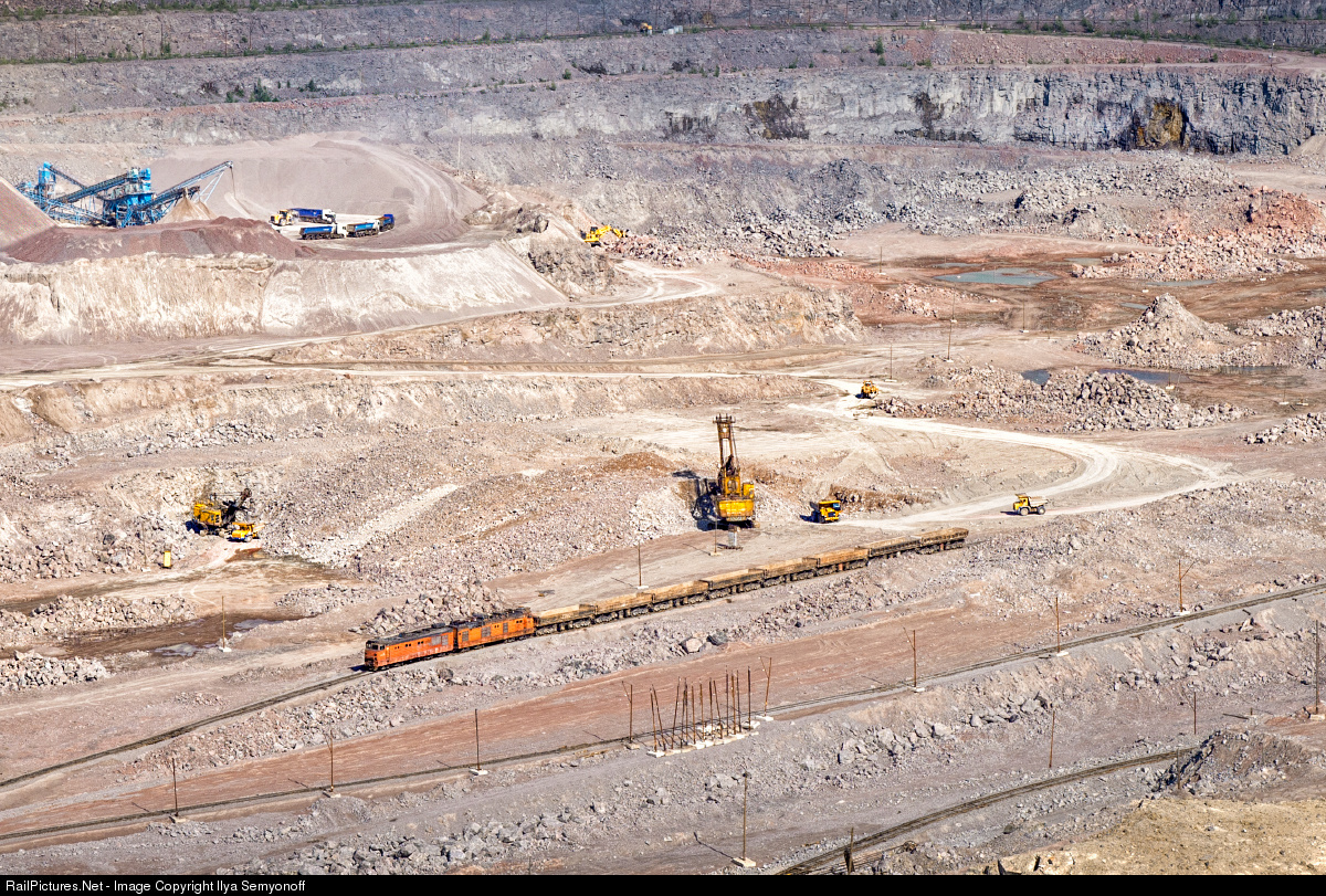 OPE1 traction unit stands on the filling at the quarry of "Pavlovsky GOK". The action took place at "Pavlovsk Mining and Processing Integrated Works" ("Pavlovsky GOK") - the largest plant for extraction and processing of granite in Europe. Here you can see OPE1 close-up to understand scale and proportions.