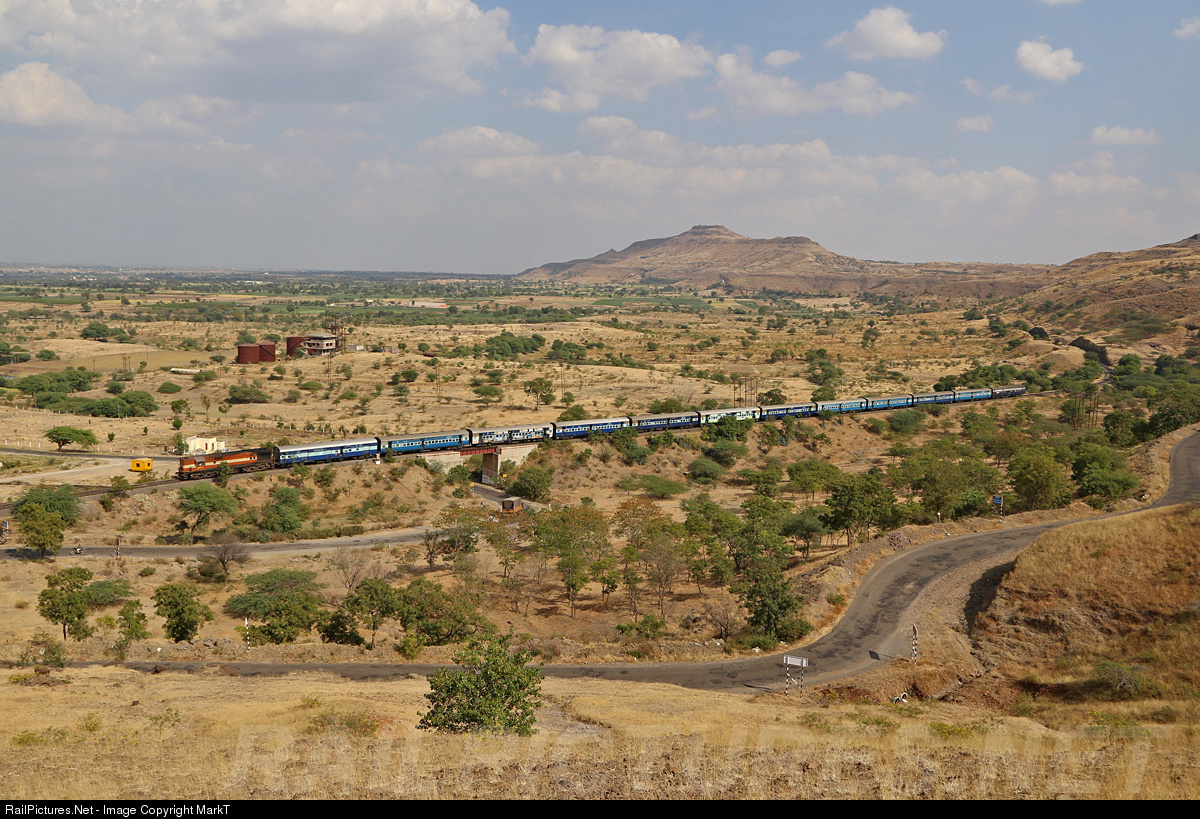 | Thanks to the work of Lalam and Apurva, the Shindavane Ghat (hill) section can now be called "famous" in railfan circles... Here 14886 descends the ghat with the daily Kolhapur to Pune Passenger train. |