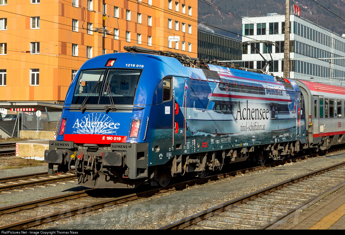 | This is the latest advertising Locomotive of the ÖBB, it advertises the Achensee Schiffahrts GmbH. The Baptism took place at 11 Clock on 30 January 2016 in the Innsbruck Main Station. |