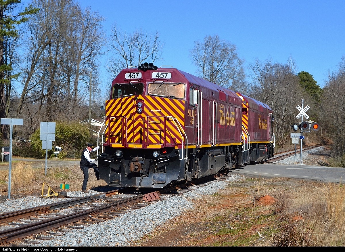 The power for the P&N Passenger Special idles to a stop at the North (East) end of Belmont Junction, and the Conductor climbs down to throw the switch to run around the train.