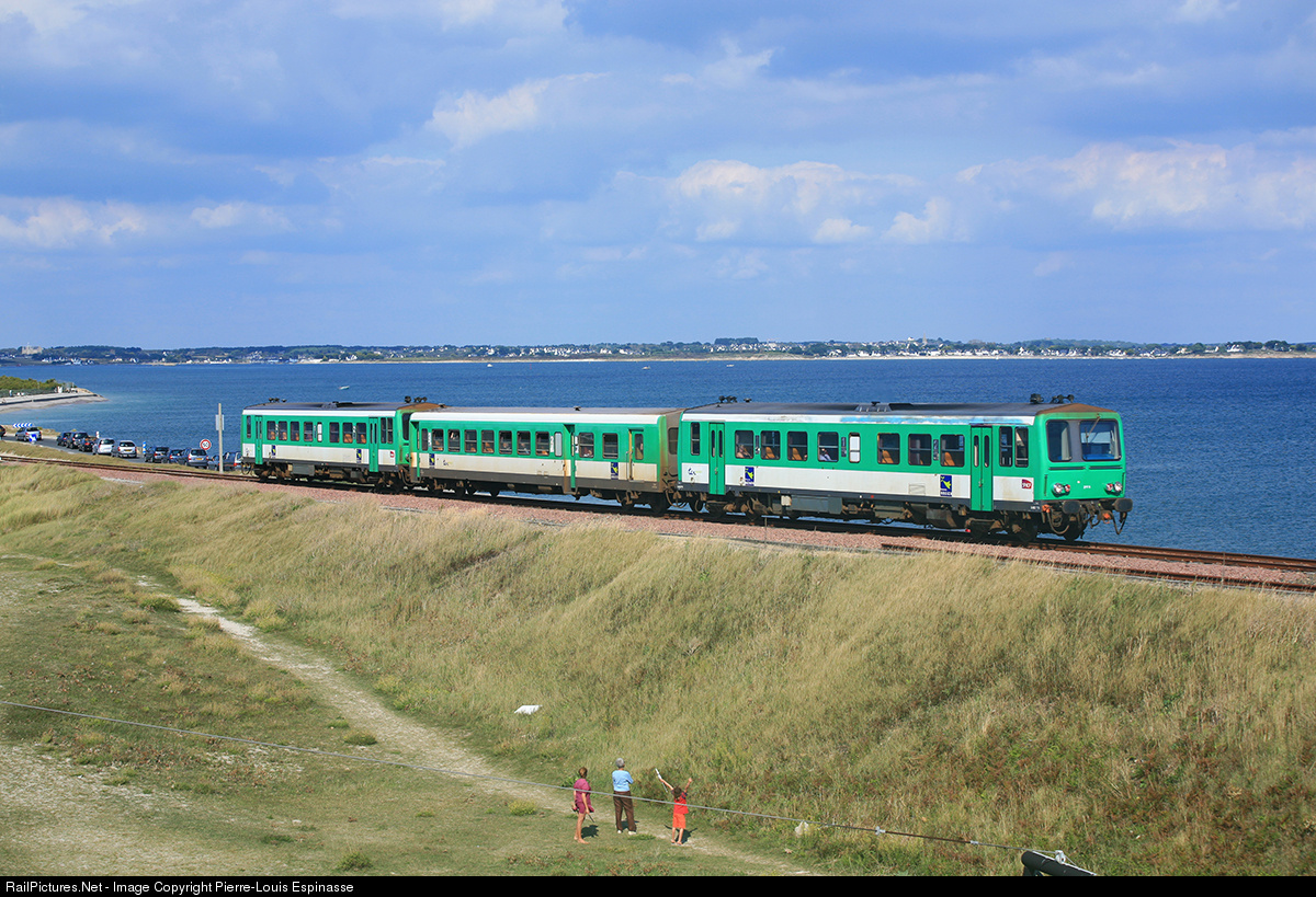 The express regional train nicknamed "tire-bouchon" (because of the line of cars he creates at the crossing level) runs the line from Auray to Quiberon.
