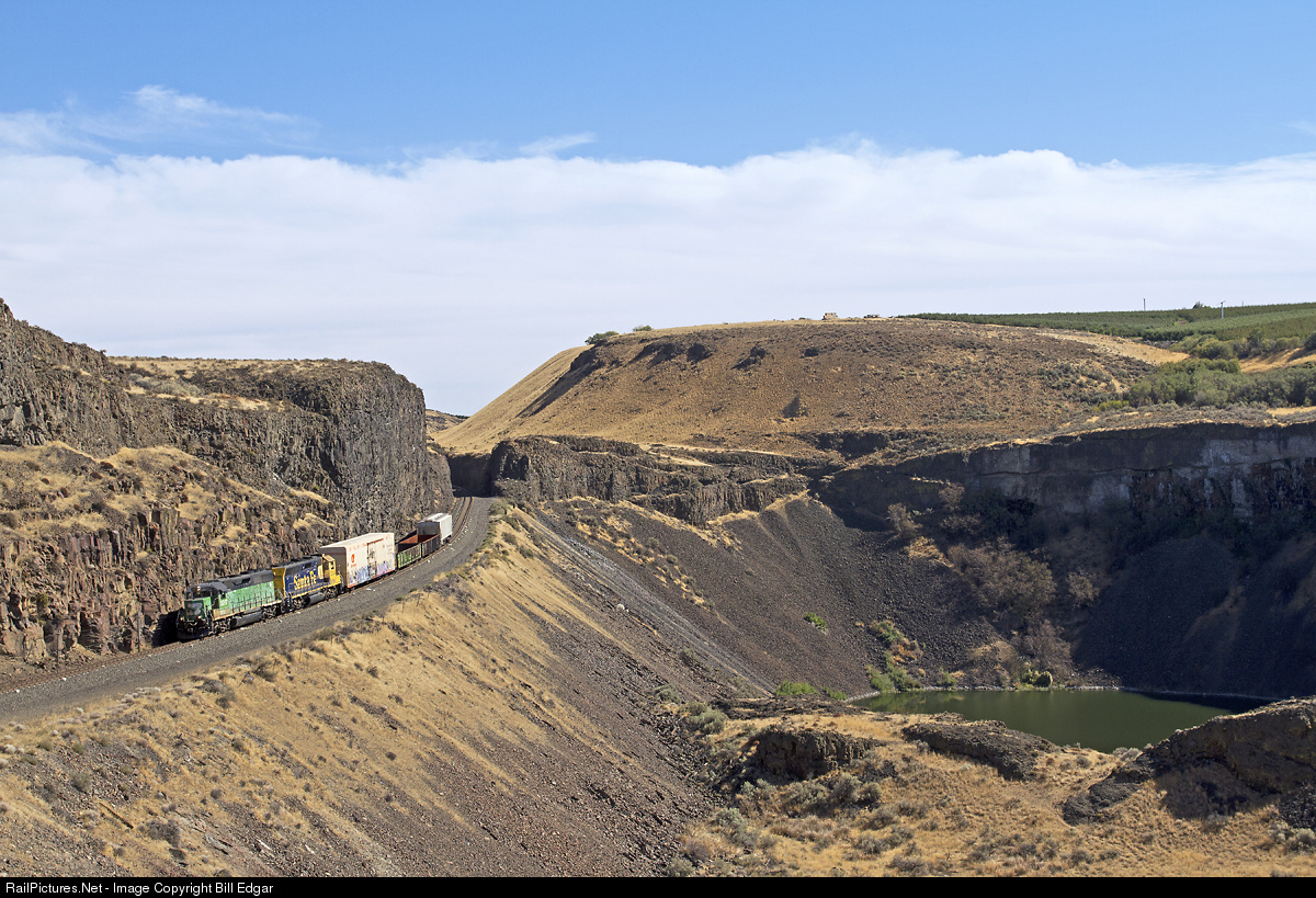 The Spud Local which is a five day per week job that originates in Appleyard (Wenatchee), WA, is seen returning from Quincy behind X-CBQ GP40, BNSF 3017 and a former Santa Fe GP40X. The train typical turns at Quincy, but is allowed to run as far east as Marlin, WA to serve grain elevators if need be.