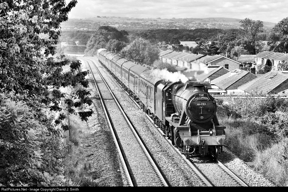 | Preserved Stanier 8F loco 48151 approaches Clitheroe with a "Fellsman" railtour.Apart from the modern housing,not too much has changed here in the last 50 years. |