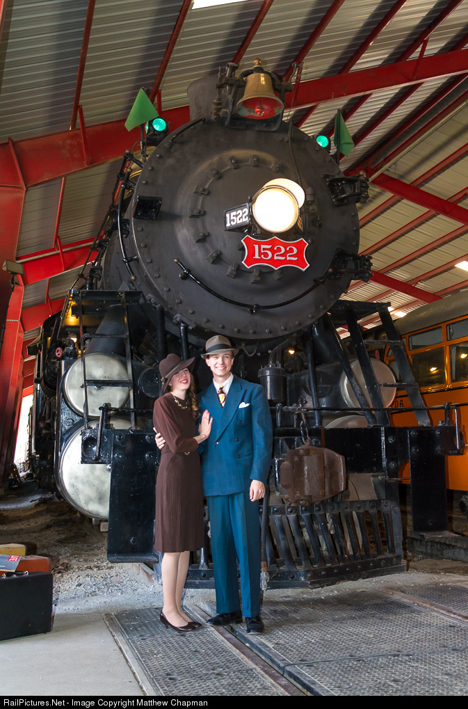 | At the first ever "Rails At Night" event hosted by the museum, period actors pose in front of one of the museum's treasures, the Frisco 1522 4-8-2 Mountain. We in St. Louis still hold out hope that we will see 1522 hit the rails again some day! |