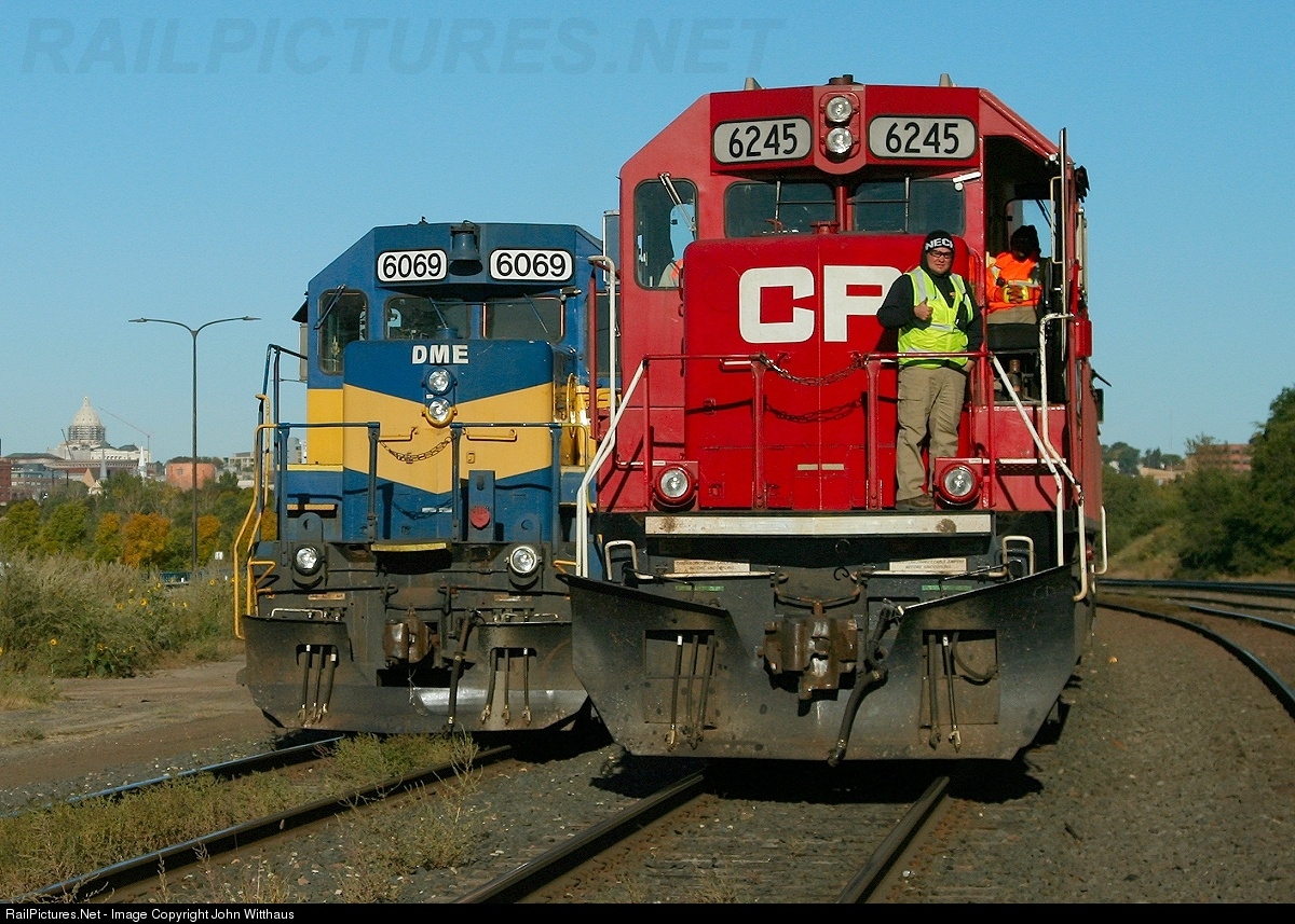 Portrait of the Modern Railroader: After a long day on the Shakopee job, Conductor Ledesma gives a thumbs up, knowing that he's going home. After getting back to St. Paul, they are told to tie it down on SOO1 since there is no space in the yard. The 6069 is on the H35, also tied down from the previous night. Taken while off duty, wearing full PPE.