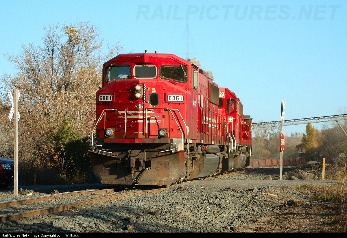 Soo Line on the Soo Line These two former Soo SD60's are in about run 5 as they shove this ballast train through the tipple at Dresser Trap Rock, Inc. Without a digital speedometer, the engineer keeps a close eye on the ground to determine if he is at "walking speed." This is the original Soo Line route from the Twin Cities to Superior ,WI. Ironically, although technically back on home rails, with a build date of 11/89, 6061 was delivered about 5 years after this route was abandoned, and the remains sold to Wisconsin Central LTD. Taken while off duty, wearing full PPE.