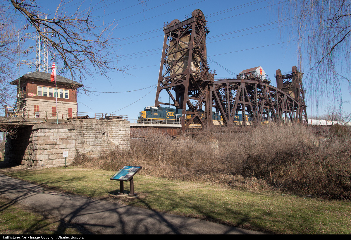 CSX Y129-11crosses the lift span and approaches Clagg Tower on the LIRC bridge over the Ohio River.