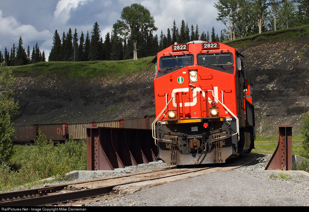 Canadian National coal train No. 769 departs Leyland, Alberta, on July 15, 2013. The train is headed up the Luscar Industrial Spur and will load at Luscar Mine loadout that is part of Teck’s Cardinal River Operation.