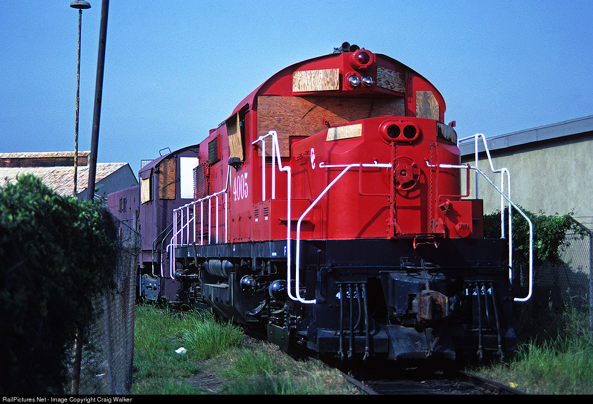 Sitting in Chrome Crankshaft's facility in Alhambra, California, on May 12th, 1982, is RS-32 4005. (These are also known as DL-721s by builder Alco.) Placed in service by SP in April 1962 as Southern Pacific 7309, it would later be renumbered SP 4009 in the massive 1965 renumbering program. CC acquired this engine upon retirement from the SP on November 22nd, 1978, and numbered is 4005. It was leased to the San Diego & Arizona Eastern in 1979, and was returned to Chrome Crankshaft by April 9th, 1980. In June 1987 it was leased to Amax Magnesium in Rowley, UT, who returned it in October 1988. In March of 1989, it was sold to Short Line Enterprises of Valencia, CA, and today it serves tourist railroad Fillmore & Western as their number 4009.