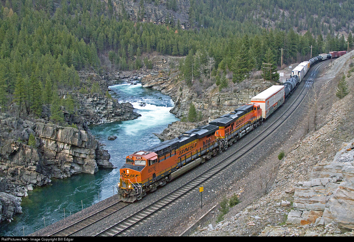 RailPictures.Net Photo: BNSF 8276 BNSF Railway GE ES44C4 at Kootenai Falls, Montana by Bill Edgar