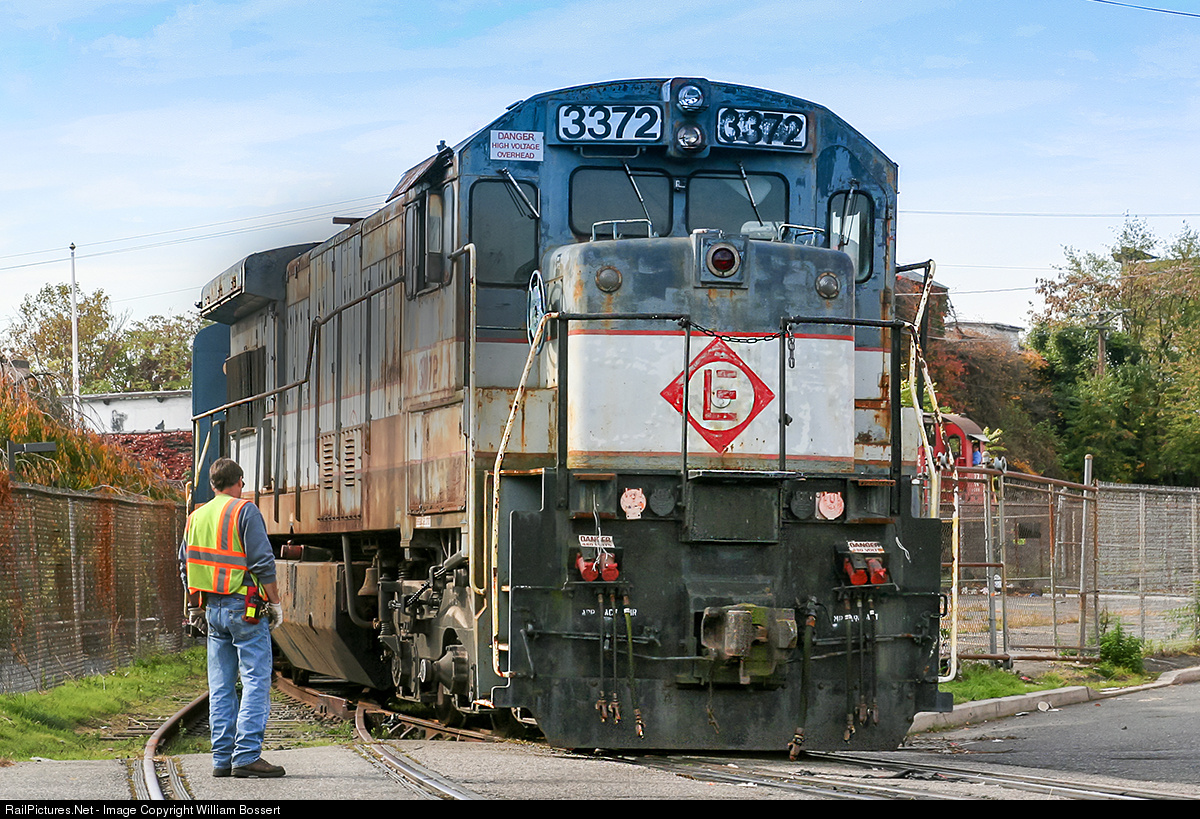 The Erie Lackawanna 3372 U34CH has spend many years at the Dundee Yard at Passaic NJ hibernating , rotting away and dealing with vandals, but the last day of October 2014 with the assistance of a Morristown & Erie crew and engine, has just pulled the U34CH out of its resting place for the first time in years. It is getting a once over from a M&E crew member before proceeding its move to its new home at the URHS headquarters in Boonton NJ.
