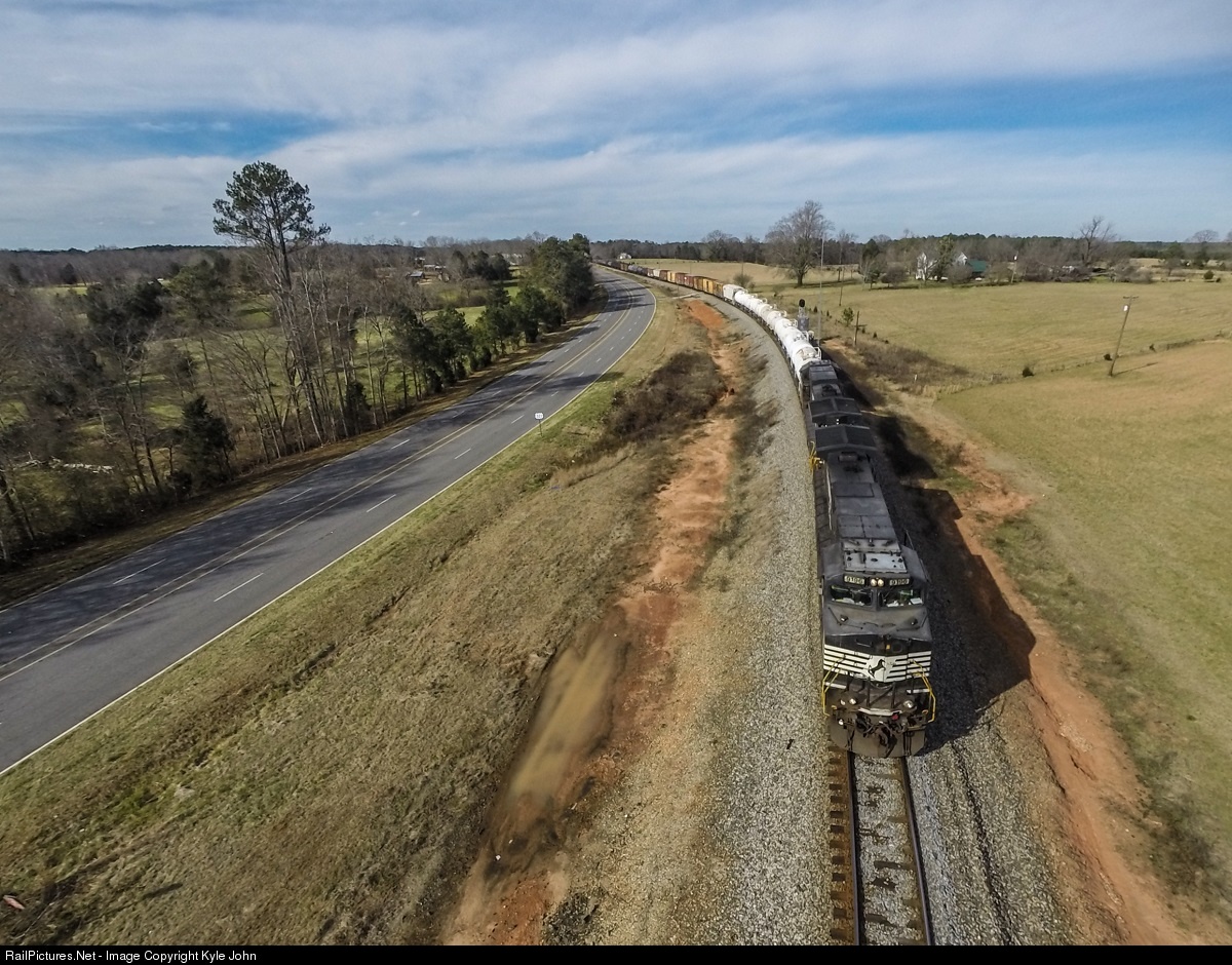 A few miles south of Chester, South Carolina finds a late running Norfolk Southern 155 on the R-Line. Often overlooked by railfans, this line (despite its low traffic levels) offers an easy chase with some nice shots. Sweeping curves, open field, and rolling grades can be found everywhere on the Charlotte - Augusta mainline. If there is something of note running down the R-Line, I think it is definitely worth the chase - and even if it is Dash-9s like usual, if you're into photography, I still think it is worth it.