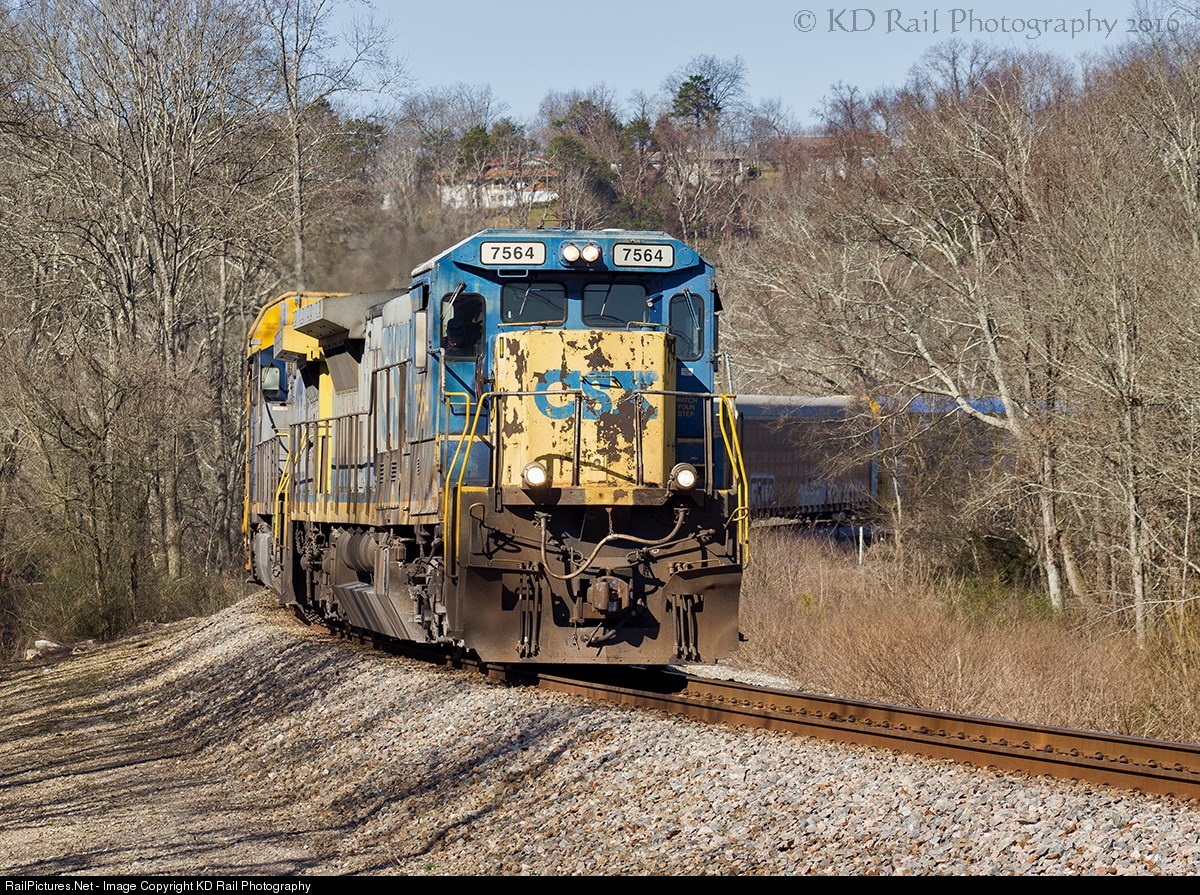 After crossing over Chickamauga Creek, CSX Q235-12 (Louisville,KY-Winston,FL) shoot south on the CSX Western & Atlantic Sub (WA) through Tyner Holdout MP WA-128.9 on this bitter cold morning. With no northbound meet planned this Vehicle/Merchandise freight will get as far as it can til the dispatcher get this train in the hold to let the hot pig CSX Q049-12 (Chicago,Ill-Atlanta,GA) which is staying two block behind this 11,000ft long freight.