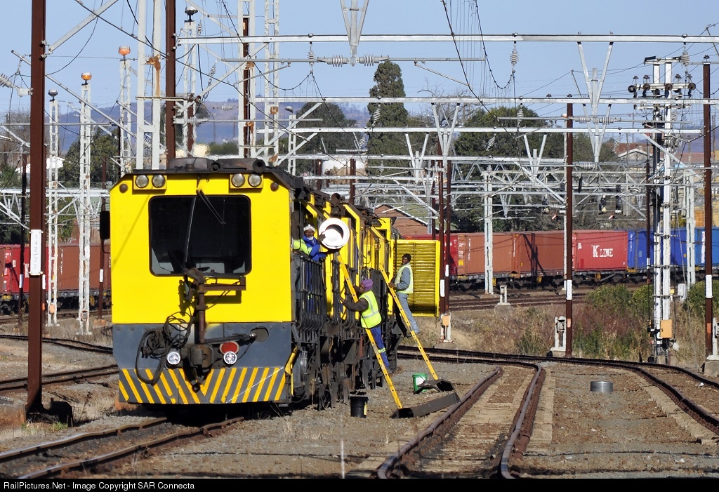 | One of the Speno manufactured rail grinding sets, owned and operated in South Africa by Aveng Manufacturing Lennings Rail Services, getting a good clean on one of the loop lines at Lions River Station in the KwaZulu Natal Midlands, while a Johannesburg bound (Kazerne) container train passes by in the background. |