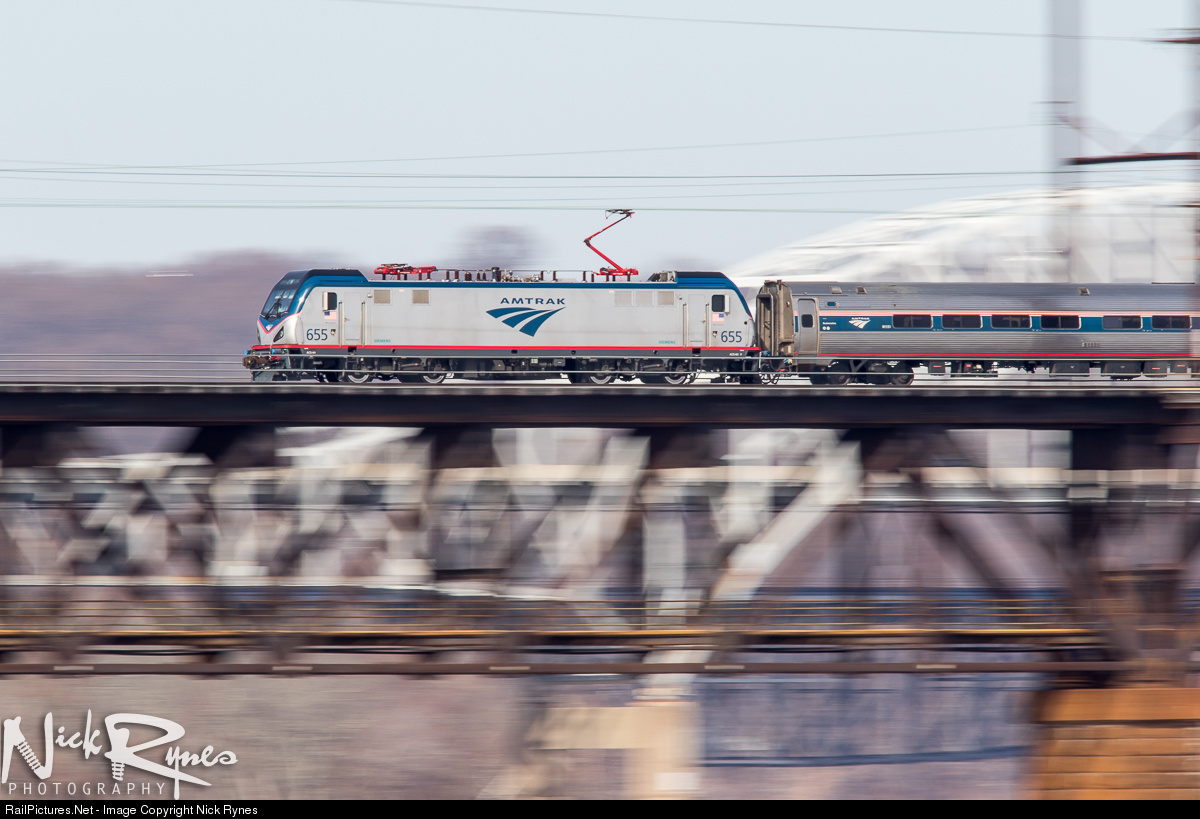 | I'm no Mitch Goldman, but I can still pull off a pan every once in a while. While waiting for one of the last remaining AEM-7s on Amtrak's active roster, train 125 crosses the Susquehanna River. |