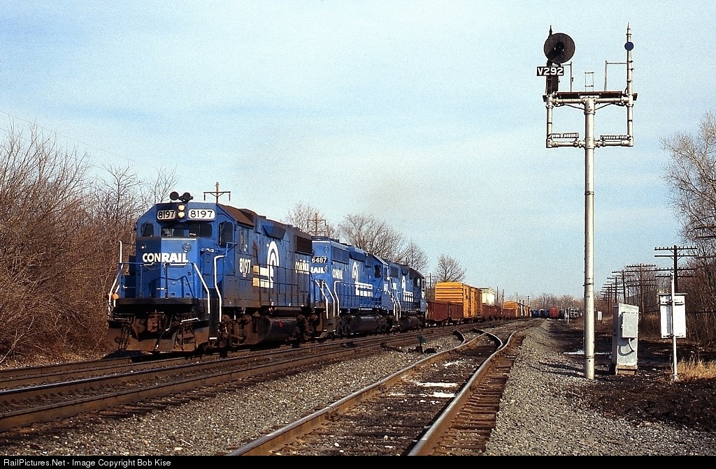 A westbound manifest is accelerating to track speed after slowing for Lebanon's multiple grade crossings, in this photo taken behind the Lebanon Valley Mall. A lot has changed here in the last 25 years; the siding is still intact, but used mostly to park eastbound oil trains, the classic Reading signal is gone, the yard has been virtually abandoned, and wide-cabs are by far the norm.