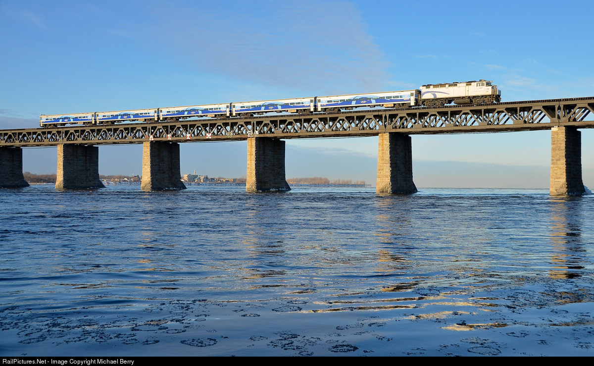 AMT 84 is crossing the St-Lawrence river in the morning sun, less than a minute from its first stop on the island of Montreal at Lasalle station.