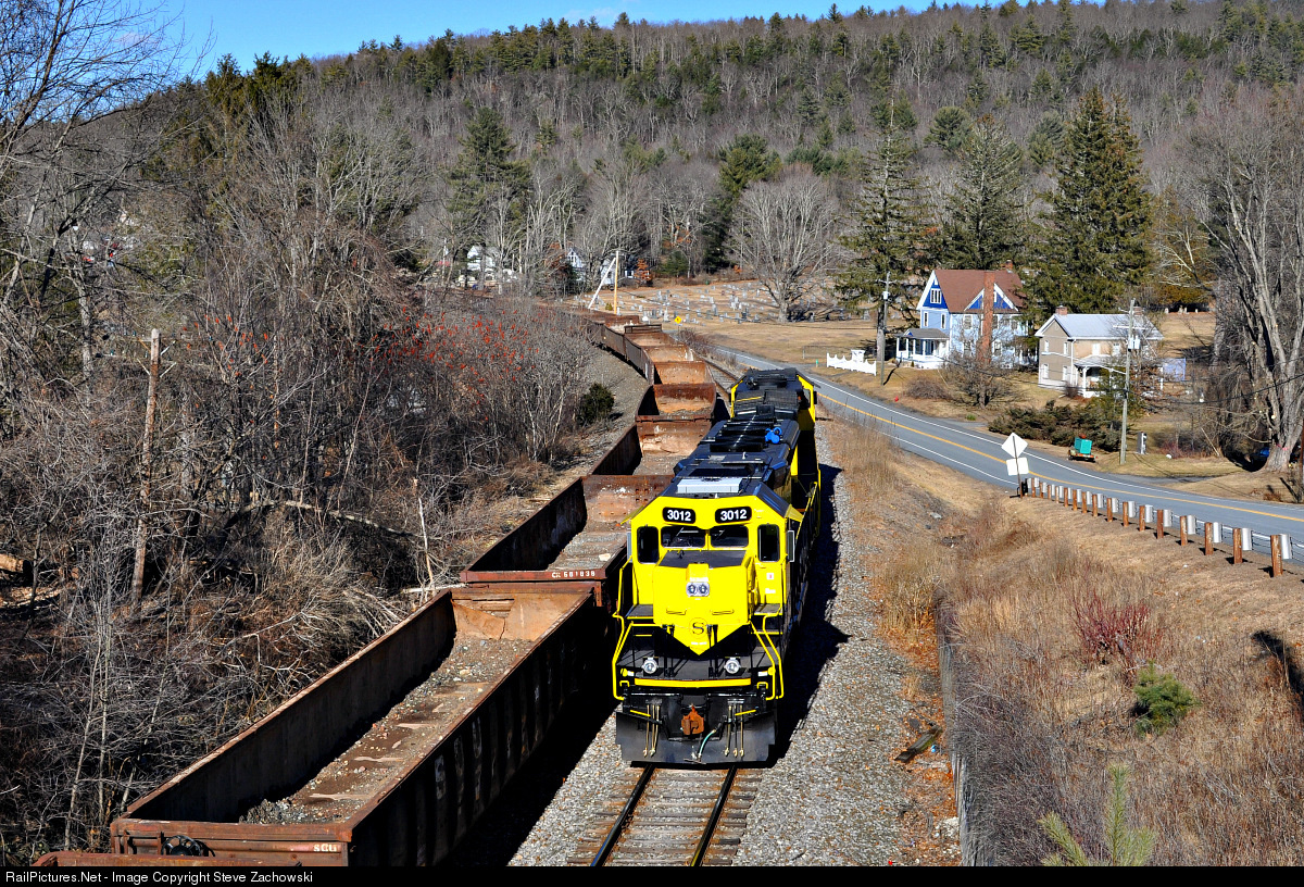 A string of stored gondolas occupy the passing siding in Narrowsburg, NY as BH-X slows to a stop for necessary crew re-fueling. The new SD33-ECO is only making its second trip on the Southern Tier and it just happened to be a daylight one, a rare treat! The crew had delivered a high and wide to Port Jervis earlier in the afternoon and is running light back to Binghamton, NY.