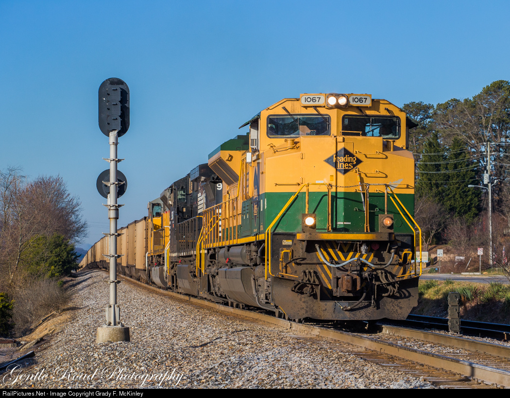 | 744 splits the signals at the west end of Grovestone near Black Mountain, NC with the Reading Lines heritage unit leading the way on this beautiful February morning. |