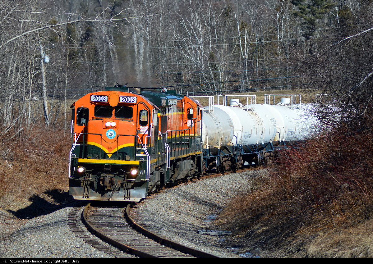Nearing the end of its run from Hermon, Maine, Central Maine & Quebec's #211 approached MP 1 in Searsport, Maine on February 27, 2016. Rolling through the horseshoe behind the old Cook's Crossing Drive-in, matching B23-7 2003 and 2006 are finishing up their southbound run with a healthy block of slurry empties up front. Sprague and Irving would both be switched by the crew once they got within the coming Searsport Yard limits.