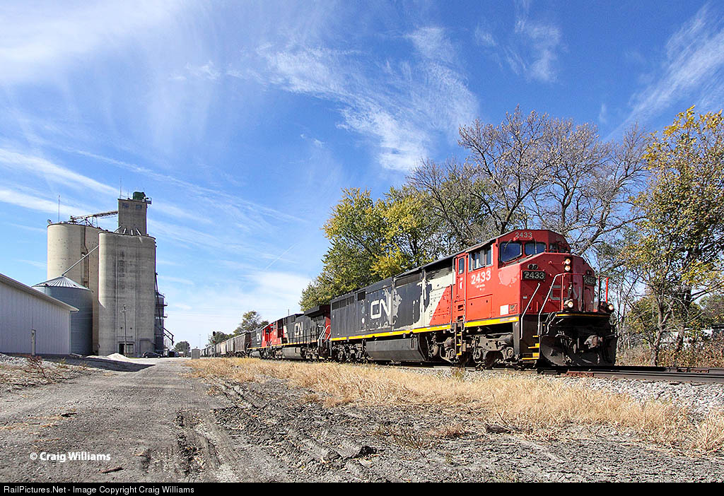 As traffic levels go down at the end of 2015 and new CN AC power arrives in 2016, alot of the older CN barns units have been put into long term storage. In February the SD60F's had only 13 or so units in active service of the 60. The GE Barn C40-8M's had about half of the 55 units still in active service. Here a beaten up 2435 leads the daily Waterloo, IA, to Kirk Yard, IN manifest train out of Waterloo and east.