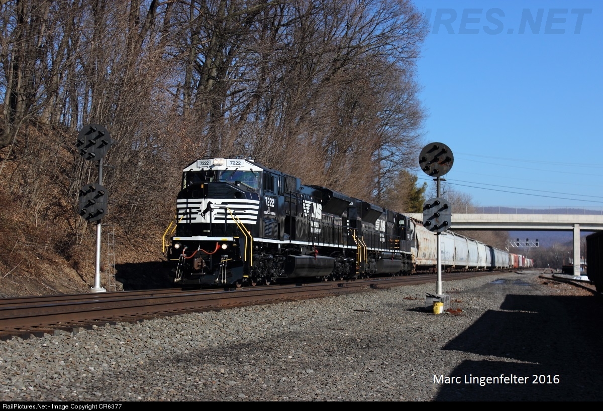 NS 12G splits the signals at CP Mifflin on a beautiful winter day. 7222 is leading it's first train after being at the Juniata shops since arriving from CSX in May of 2015 awaiting repairs due to a broken crankshaft.