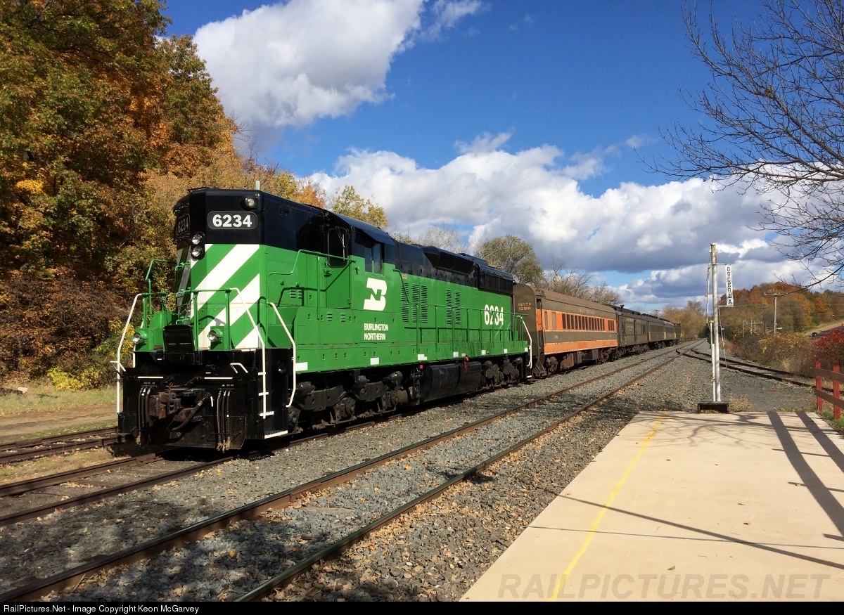 MNTX (BN) SD9 #6234 with the "Pumpkin Express" after switching cars for the weekend.