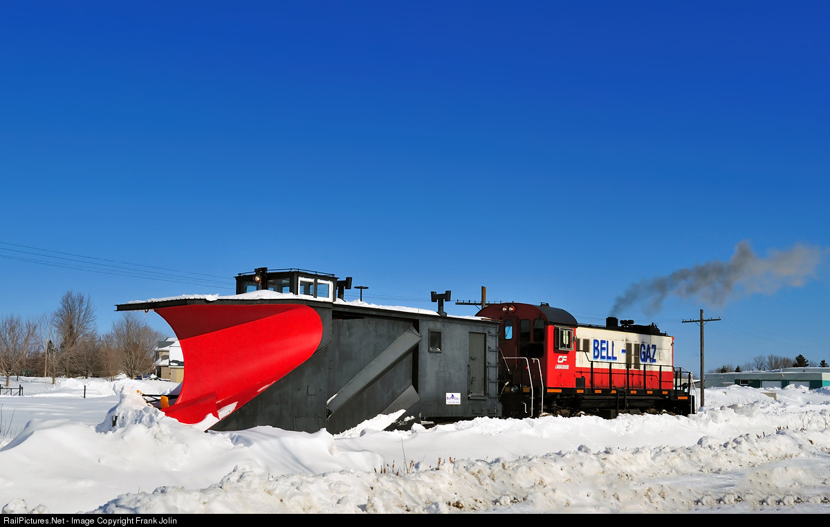 Operating on a former Canadian Pacific branchline, Bell Gaz snow plow is heading south toward the interchange with Quebec Gatineau at Joliette.