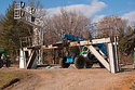 | The top of the former Southern Railway westbound signal bridge at Burke, Virginia, just removed from service, with its replacement in the background. |