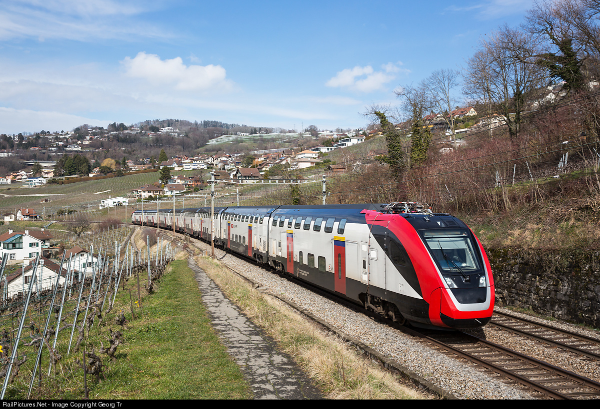 | Test run of the new doubledeck Intercity train "Twindexx Swiss Express" RABe 502 # 203 from Bombardier for the SBB. The train circulated from Fribourg to Lausanne for testing of the new WAKO, a