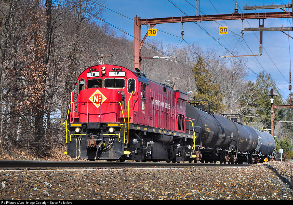 Morristown and Erie C424 #18 heads east plus 3 tank cars just east of the Mount Tabor train station en route to the CSX interchange in Kearny, NJ on an unusually warm March day.